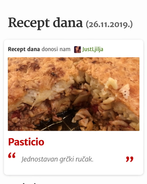 👑 još jedan Recept u nizu izabran za Recept dana by Coolinarika Podravka 🏆🥇 Objavljeno od Ljilja na 26/11/2019 u Objavljeno Klikni za link i upiši datum Objavljeno